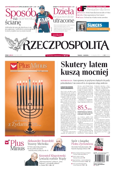Skutery latem kuszą mocniej – aura sprawia, że przybywa chętnych do jazdy jednośladami i nie zraża ich to, że egzamin zdają nieliczni; Sposób na norweską ścianę – „Jeśli będzie tak samo jak dotychczas, to się nie pogniewam. A jeśli dobrze przepracuję lato, to może przyjdzie czas i na snucie marzeń” – Justyna Kowalczyk specjalnie dla „Rz”; dzieła bezpowrotnie utracone – zniszczenia dzieł sztuki w skali masowej niosą najczęściej wojny, lecz to nie jedyny powód – tracimy je w wyniku aktów desperacji samego artysty, kradzieży, katastrof i wojen; traumy Michnika – „W Polsce antysemitą zostaje ten, kto nie podoba się Żydom” – Aleksander Rozenfeld.