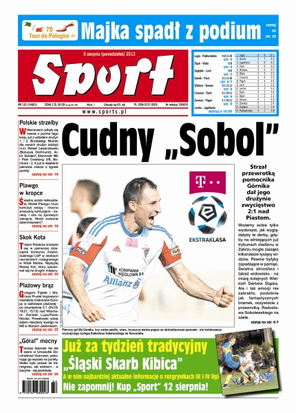 Strzał przewrotką pomocnika Górnika dał jego drużynie zwycięstwo 2:1 nad Piastem; Legia rozbiła Podbeskidzie, chociaż „górale” do przerwy grali przyzwoicie; Widzew nie odczuł braku Bartłomieja Pawłowskiego i po dwóch trafieniach Eduardsa Visnjakovsa pokonał u siebie Koronę; Robert Lewandowski strzelił gola w Pucharze Niemiec; Maciej Kot był o krok od powtórzenia sukcesu sprzed roku – w konkursie indywidualnym na skoczni im. Adama Małysza lepszy od zakopiańczyka był jedynie rewelacyjny Andreas Wellinger; Konrad Czerniak z czasem 51,46 s wywalczył brązowy medal na dystansie 100 m stylem motylkowym; Grzegorz Fijałek i Mariusz Prudel z brązowym medalem mistrzostw Europy; Tomasz Adamek zgodnie z oczekiwaniami pewnie pokonał na punkty Dominicka Guinna; siostry Radwańskie przegrały w ćwierćfinałach w Carlsbadzie i szybko przeniosły się do Toronto.