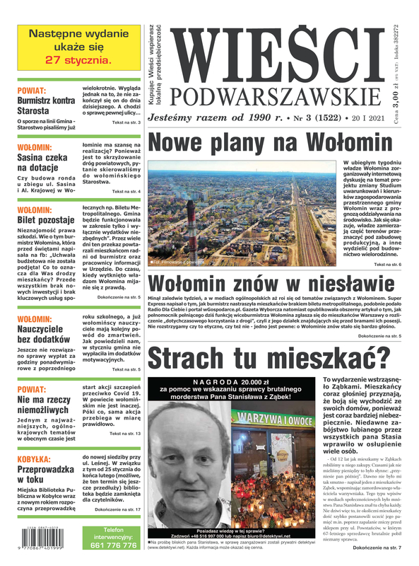 Wieści Podwarszawskie niezależny tygodnik lokalny, obszar powiat wołomiński, tematyka lokalna informacyjna, społeczno - kulturalna, sport, rozrywka, reklamy, ogłoszenia drobne. Ukazuje się w środy.