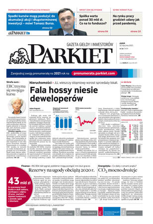 Największy w Polsce newsroom gospodarczy zbiera, analizuje i zgłębia dla Państwa najważniejsze informacje ze świata finansów. Codzienne wydanie „Parkietu”, sześć dni w tygodniu, to kilkadziesiąt artykułów o emitentach, instytucjach finansowych, gospodarce. To również opinie, felietony i wywiady z najważniejszymi ludźmi krajowej i globalnej finansjery.