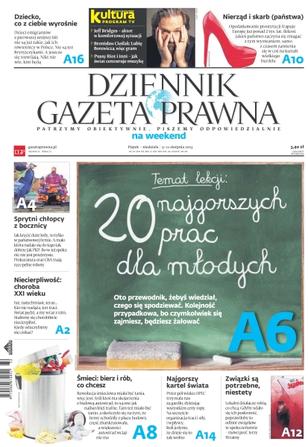 Dziennik Gazeta Prawna – codziennie obiektywne i rzetelne informacje z kraju i ze świata. Piszemy o tym, co dziś ważne i odpowiadamy na Wasze pytania – szczególnie te związane z obecnymi wyzwaniami tj. pandemia, praca zdalna. Na bieżąco wyjaśniamy zmieniające się przepisy. Wspieramy się wyjaśnieniami ministerstw i urzędów. Pomagamy unikać błędów i ostrzegamy, jakie są kary. Ponadto w każdy piątek specjalne magazynowe wydanie Dziennika Gazety Prawnej w całości z tekstami społeczno-ekonomicznymi.