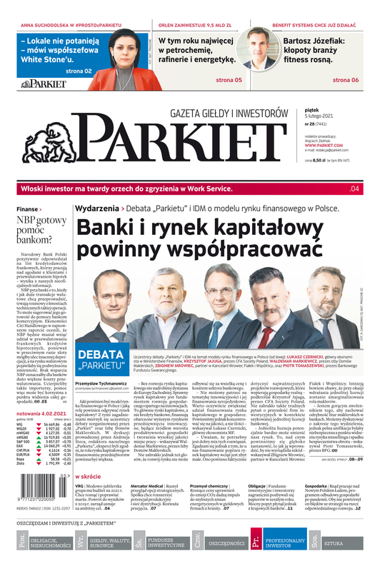 Największy w Polsce newsroom gospodarczy zbiera, analizuje i zgłębia dla Państwa najważniejsze informacje ze świata finansów. Codzienne wydanie „Parkietu”, sześć dni w tygodniu, to kilkadziesiąt artykułów o emitentach, instytucjach finansowych, gospodarce. To również opinie, felietony i wywiady z najważniejszymi ludźmi krajowej i globalnej finansjery.
