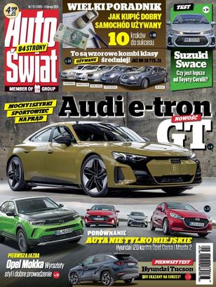 Audi e-tron GT – premiera sportowego elektryka; Kia Sorento – laureatka Moto Awards; Opel Mokka – wrażenia z jazdy; Toyota Mirai i inne nowości z Japonii; Ceny samochodów – raport z rynku; Hyundai i20, Mazda 2 i Opel Corsa – porównanie aut benzynowych segmentu B; Hyundai Tucson – nowość z benzyniakiem 1.6; Suzuki Swace – bliźniak Toyoty Corolli kombi; Opel Insignia po liftingu, z silnikiem 2.0 turbo; Czy wolno podsłuchiwać policję; Pomoc w zimowych problemach – 8 sposobów.