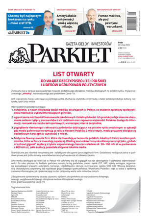 Największy w Polsce newsroom gospodarczy zbiera, analizuje i zgłębia dla Państwa najważniejsze informacje ze świata finansów. Codzienne wydanie „Parkietu”, sześć dni w tygodniu, to kilkadziesiąt artykułów o emitentach, instytucjach finansowych, gospodarce. To również opinie, felietony i wywiady z najważniejszymi ludźmi krajowej i globalnej finansjery.