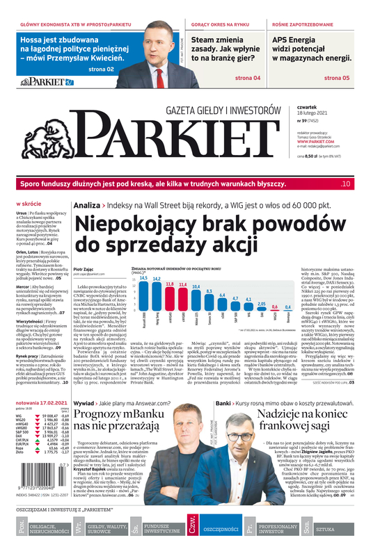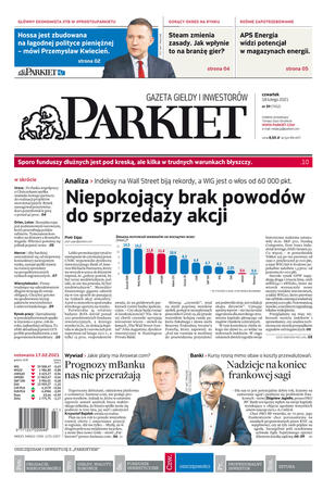Największy w Polsce newsroom gospodarczy zbiera, analizuje i zgłębia dla Państwa najważniejsze informacje ze świata finansów. Codzienne wydanie „Parkietu”, sześć dni w tygodniu, to kilkadziesiąt artykułów o emitentach, instytucjach finansowych, gospodarce. To również opinie, felietony i wywiady z najważniejszymi ludźmi krajowej i globalnej finansjery.