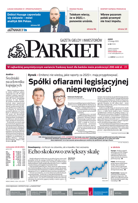 Największy w Polsce newsroom gospodarczy zbiera, analizuje i zgłębia dla Państwa najważniejsze informacje ze świata finansów. Codzienne wydanie „Parkietu”, sześć dni w tygodniu, to kilkadziesiąt artykułów o emitentach, instytucjach finansowych, gospodarce. To również opinie, felietony i wywiady z najważniejszymi ludźmi krajowej i globalnej finansjery.