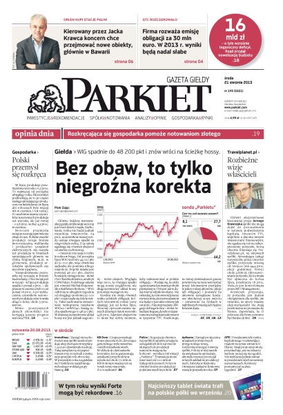 Bez obaw, to tylko niegroźna korekta – WIG spadnie do 48 200 pkt i znów wróci na ścieżkę hossy; Orlen, kierowany przez Jacka Krawca chce przejmować nowe obiekty, głównie w Bawarii; Travelplanet.pl – rozbieżne wizje właścicieli; polski przemysł się rozkręca; w tym roku wyniki Forte mogą być rekordowe.