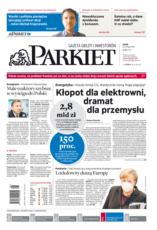 Największy w Polsce newsroom gospodarczy zbiera, analizuje i zgłębia dla Państwa najważniejsze informacje ze świata finansów. Codzienne wydanie „Parkietu”, sześć dni w tygodniu, to kilkadziesiąt artykułów o emitentach, instytucjach finansowych, gospodarce. To również opinie, felietony i wywiady z najważniejszymi ludźmi krajowej i globalnej finansjery.