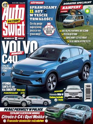 Volvo C40 – nowy szwedzki elektryk; VW ID.3 Cabrio – zapowiedź nowej wersji; Hyundai Bayon – miejski crossover; Kia Sorento kontra Hyundai Santa Fe – porównanie rodzinnych SUV-ów; Volvo S90 T8 Recharge AWD – 390-konna hybryda plug-in; Toyota Highlander 2.5 – SUV z charakterem; Kampery – przegląd rynku, porady, akcesoria, regulacje prawne; Testy długodystansowe – sprawdzamy 11 aut przez 100 tys. km.