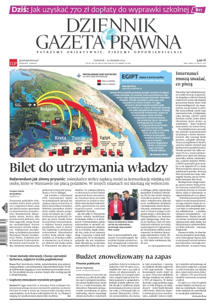 Dziennik Gazeta Prawna – codziennie obiektywne i rzetelne informacje z kraju i ze świata. Piszemy o tym, co dziś ważne i odpowiadamy na Wasze pytania – szczególnie te związane z obecnymi wyzwaniami tj. pandemia, praca zdalna. Na bieżąco wyjaśniamy zmieniające się przepisy. Wspieramy się wyjaśnieniami ministerstw i urzędów. Pomagamy unikać błędów i ostrzegamy, jakie są kary. Ponadto w każdy piątek specjalne magazynowe wydanie Dziennika Gazety Prawnej w całości z tekstami społeczno-ekonomicznymi.