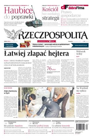 Autorzy obraźliwych wpisów na forach internetowych muszą się liczyć z tym, że nie będą anonimowi; atak chemiczny w Syrii; zagrożony jest wart pół miliarda złotych kluczowy program polskiej artylerii; Kościół bez medialnej strategii; polskim przedsiębiorcom coraz bardziej opłaca się handlować ze Wschodem; kto pomoże otępiałym – za 15 lat będzie milion chorych na alzheimera.