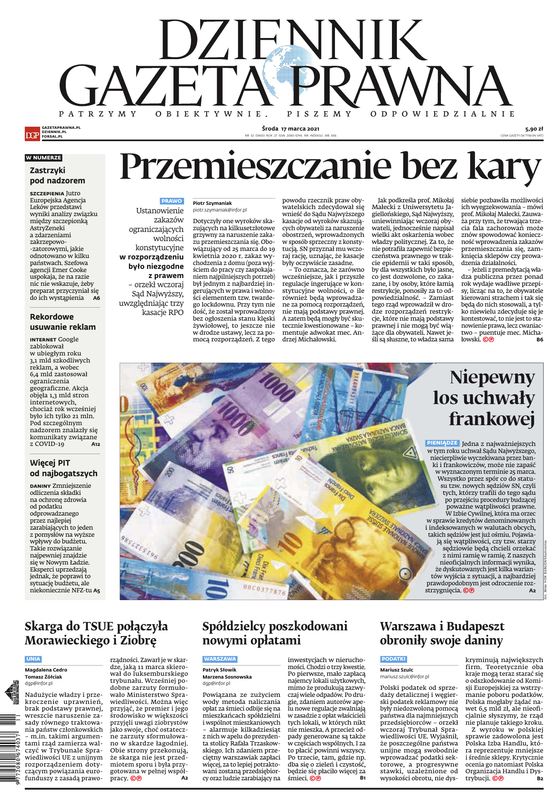 Gazetę wzbogacają praktyczne dodatki dla specjalistów, niedostępne w kioskach: Księgowość i Podatki, Rachunkowość i Audyt, Firma i Prawo, Samorząd i Administracja, Prawnik, Kadry i Płace, Ubezpieczenia i Świadczenia. NOWOŚĆ 2021 r. dodatki Biuro Rachunkowe i Księgowość Budżetowa (dostępne raz w miesiącu). Dodatkowo publikujemy wyjątkowo cenione przez Czytelników specjalne dodatki dotyczące najważniejszych zmian, nowych rozwiązań, na gorąco odpowiadamy na pytania. Piszemy o pracy zdalnej, o tarczach antykryzysowych, o nowych przepisach do walki z epidemią, o sposobach walki z zatorami płatniczymi i nowych obowiązkach pracodawców. Zapewniamy bezpieczeństwo w stosowaniu zmieniającego się prawa.