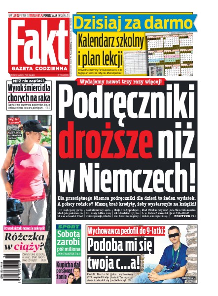 Polacy wydają na podręczniki szkolne trzy razy więcej pieniędzy niż Niemcy; czy Magdalena Różczka jest w ciąży; Marcin M., skazany za pedofilię, opiekował się dziećmi na koloniach.
