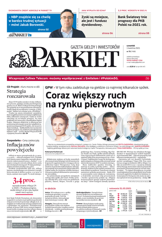 Największy w Polsce newsroom gospodarczy zbiera, analizuje i zgłębia dla Państwa najważniejsze informacje ze świata finansów. Codzienne wydanie „Parkietu”, sześć dni w tygodniu, to kilkadziesiąt artykułów o emitentach, instytucjach finansowych, gospodarce. To również opinie, felietony i wywiady z najważniejszymi ludźmi krajowej i globalnej finansjery.