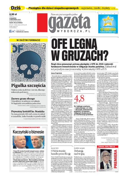 Rząd chce przesunąć połowę pieniędzy z OFE do ZUS i zabronić funduszom inwestowania w obligacje skarbu państwa; przymus wyższych płac, nowe podatki i cięcia w administracji proponuje prezes PiS; dlaczego Barack Obama waha się w sprawie ataku na Syrię.