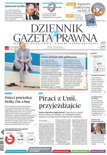 Dziennik Gazeta Prawna – codziennie obiektywne i rzetelne informacje z kraju i ze świata. Piszemy o tym, co dziś ważne i odpowiadamy na Wasze pytania – szczególnie te związane z obecnymi wyzwaniami tj. pandemia, praca zdalna. Na bieżąco wyjaśniamy zmieniające się przepisy. Wspieramy się wyjaśnieniami ministerstw i urzędów. Pomagamy unikać błędów i ostrzegamy, jakie są kary. Ponadto w każdy piątek specjalne magazynowe wydanie Dziennika Gazety Prawnej w całości z tekstami społeczno-ekonomicznymi.