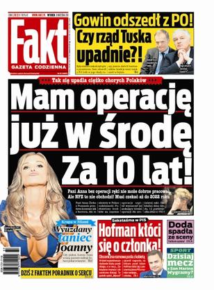 Gowin odszedł z PO – czy teraz rząd Tuska upadnie; dlaczego w naszym kraju chorzy ludzie muszą tak długo czekać na operacje; wyuzdany taniec Joanny Krupy; sekstaśma w PiS – Hofman kłóci się o członka; Doda spadła ze sceny i trafiła do szpitala; dzisiaj mecz z San Marino, czy naszym zawodnikom uda się go wygrać.