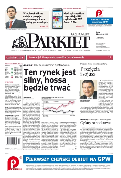 Największy w Polsce newsroom gospodarczy zbiera, analizuje i zgłębia dla Państwa najważniejsze informacje ze świata finansów. Codzienne wydanie „Parkietu”, sześć dni w tygodniu, to kilkadziesiąt artykułów o emitentach, instytucjach finansowych, gospodarce. To również opinie, felietony i wywiady z najważniejszymi ludźmi krajowej i globalnej finansjery.