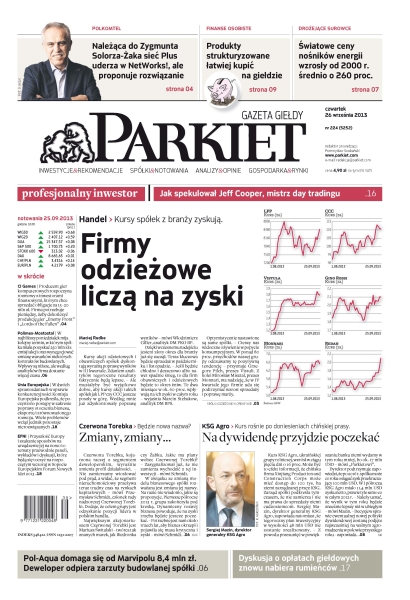 Spółki odzieżowe rozpoczęły jesienne żniwa; zbudujmy ogólnopolską sieć LTE na częstotliwości wystawianej na aukcję – zaprasza konkurentów właściciel Plusa i jednocześnie uderza; Czerwona Torebka wraca do korzeni; surowce dalej będą drożeć; zasady inwestycyjne ikony day tradingu Jeffa Coopera; warszawska giełda szuka złotego środka; Komisja Europejska zaleca zdecydowaną poprawę działalności administracji publicznej.