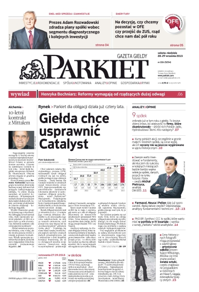 Alchemia negocjuje umowę na 10 lat z ArcelorMittal; diagnostyka Enel-Medu może zostać sprzedana; europejskie firmy są tak skrępowane regulacjami, które narzuca Bruksela, że bez ich ograniczenia trudno im będzie wykonać krok naprzód; Catalyst wciąż jeszcze jest na początku drogi; czy zawsze warto jest inwestować w fundamenty; dystrybutorzy leków mogą nadal zyskiwać; CCC, PKO BP i Synthos typami