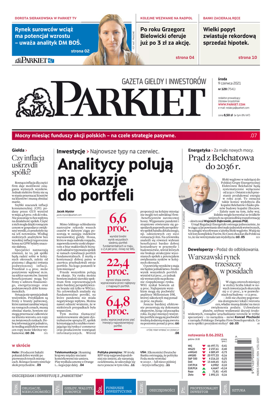 Największy w Polsce newsroom gospodarczy zbiera, analizuje i zgłębia dla Państwa najważniejsze informacje ze świata finansów. Codzienne wydanie „Parkietu”, sześć dni w tygodniu, to kilkadziesiąt artykułów o emitentach, instytucjach finansowych, gospodarce. To również opinie, felietony i wywiady z najważniejszymi ludźmi krajowej i globalnej finansjery.