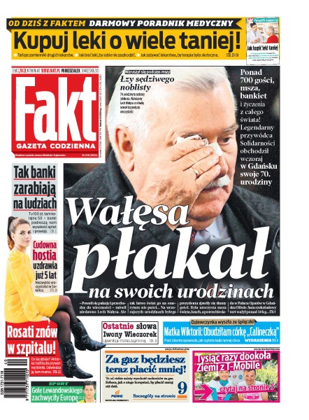 Lech Wałęsa obchodził 70. urodziny; Weronika Rosati znów trafiła do szpitala; cudowna hostia z Sokółki uzdrawia już 5 lat; czy Miss Świata straci koronę przez nagie zdjęcia.