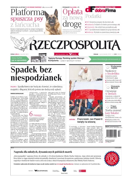 Spadkobiercy nie będą się obawiać, że odziedziczą majątek z długami, których potem nie dadzą rady spłacić; koniec z trzymaniem psów na uwięzi i występami zwierząt w cyrkach – zakłada projekt powstający w Sejmie; Jan Paweł II zostanie kanonizowany wspólnie z Janem XXIII w niedzielę Miłosierdzia Bożego.