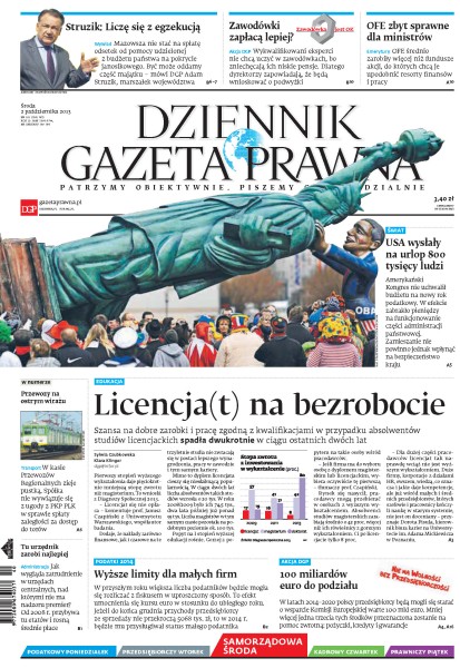 Dziennik Gazeta Prawna – codziennie obiektywne i rzetelne informacje z kraju i ze świata. Piszemy o tym, co dziś ważne i odpowiadamy na Wasze pytania – szczególnie te związane z obecnymi wyzwaniami tj. pandemia, praca zdalna. Na bieżąco wyjaśniamy zmieniające się przepisy. Wspieramy się wyjaśnieniami ministerstw i urzędów. Pomagamy unikać błędów i ostrzegamy, jakie są kary. Ponadto w każdy piątek specjalne magazynowe wydanie Dziennika Gazety Prawnej w całości z tekstami społeczno-ekonomicznymi.