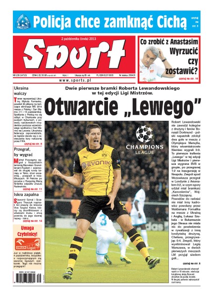 Robert Lewandowski strzelił swoje dwie pierwsze bramki w tej edycji Ligi Mistrzów; Michał Przysiężny wygrał z hiszpańskim tenisistą Marcelem Granol-Pujolem i awansował do drugiej rundy turnieju w Tokio; Sławomir Szmal i Grzegorz Tkaczyk napisali list otwarty do kibiców Vive Targów Kielce, którzy są skonfliktowani z władzami klubu i chcą powrotu do jego dawnej nazwy - Iskra.