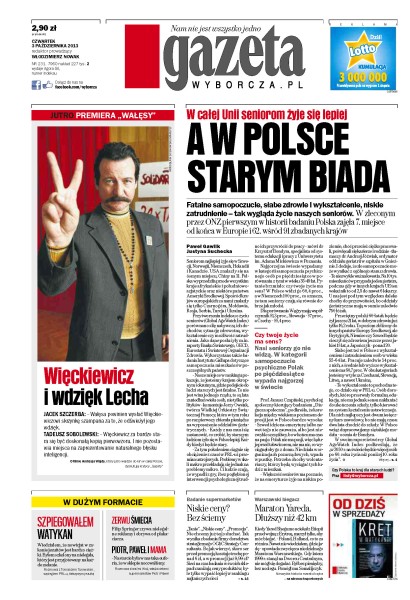 Pod względem jakości życia seniorów Polska zajmuje 7. miejsce od końca w Europie i 62. wśród 91 zbadanych krajów; Fundacja Romów chciała otworzyć w Poznaniu klasę dla romskich dzieci – okazało się, że jej prezes działał w gangu, wiceprezesa szuka policja, a członkowie rady mają proces za oszustwa; w Polsce jest coraz więcej niewierzących – wynika z sondażu CBOS.