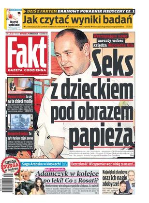 Seks z dzieckiem pod obrazem papieża – wstrząsające nowe zarzuty wobec księdza Wojciecha Gila; Adamczyk w kolejce po leki, co z Rosati – weekendowy wieczór para spędziła u lekarza; najwięksi playboye oraz ich nagie zdobycze – Szyc, a może Karolak, zobacz, który miał piękniejsze partnerki; „Ja się za te dzieci modlę” – wywiad z księdzem Gilem – oskarżenia świadków, mocne dowody, a ksiądz Gil twierdzi, że jest niewinny i robi z siebie ofiarę tajemniczego spisku; wicepremier wozi córkę rządową limuzyną – Janusz Piechociński nie czuje wstydu; 4 miliony złotych na poselskie mieszkania – fundujemy posłom gniazdko w stolicy, nawet tym spod Warszawy.