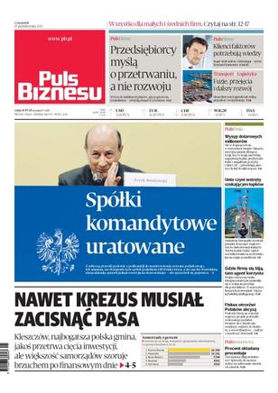 Nawet krezus musiał zacisnąć pasa – Kleszczów, najbogatsza polska gmina, jakoś przetrwa cięcia inwestycji, ale większość samorządów szoruje brzuchem po finansowym dnie; spółki komandytowe uratowane – z odsieczą przyszli posłowie z podkomisji do monitorowania systemu podatkowego, ich zdaniem, na obciążeniu tych spółek podatkiem CIT Polska straci, a nie zarobi; przedsiębiorcy myślą o przetrwaniu, a nie rozwoju – wg ekspertów Lewiatana wrócą do ambitnych planów, gdy poprawi się koniunktura; fuzje, przejęcia i dalszy rozwój – menedżerowie logistyki tak widzą przyszłość swojej branży; Unia czyni wstręty szukającym łupków – Parlament Europejski zaostrzył przepisy dotyczące węglowodorów niekonwencjonalnych.