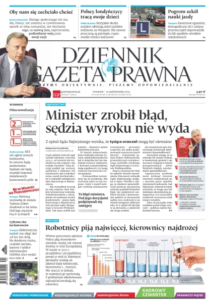 Dziennik Gazeta Prawna – codziennie obiektywne i rzetelne informacje z kraju i ze świata. Piszemy o tym, co dziś ważne i odpowiadamy na Wasze pytania – szczególnie te związane z obecnymi wyzwaniami tj. pandemia, praca zdalna. Na bieżąco wyjaśniamy zmieniające się przepisy. Wspieramy się wyjaśnieniami ministerstw i urzędów. Pomagamy unikać błędów i ostrzegamy, jakie są kary. Ponadto w każdy piątek specjalne magazynowe wydanie Dziennika Gazety Prawnej w całości z tekstami społeczno-ekonomicznymi.