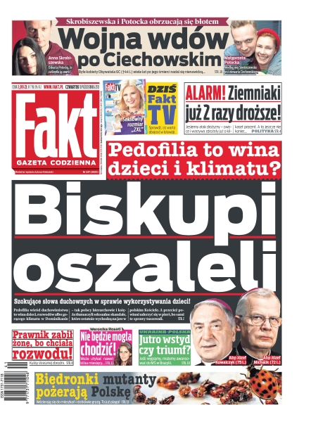 Biskupi oszaleli – wg nich pedofilia to wina dzieci i klimatu – szokujące słowa duchownych w sprawie wykorzystywania dzieci; prawnik zabił żonę, bo chciała rozwodu – kulisy strasznej zbrodni; Weronika Rosati nie będzie mogła chodzić – może utykać nawet kilka miesięcy; biedronki mutanty pożerają Polskę – wdzierają się do mieszkań i dotkliwie gryzą, to już plaga; alarm, ziemniaki już dwa razy droższe – jesienny atak drożyzny, owoce i warzywa zdrożały już o kilkaset procent, a to jeszcze nie koniec; wojna wdów po Ciechowskim – Skrobiszewska i Potocka obrzucają się błotem – wiele lat po jego śmierci nadal się nienawidzą.