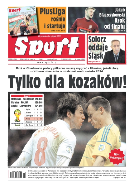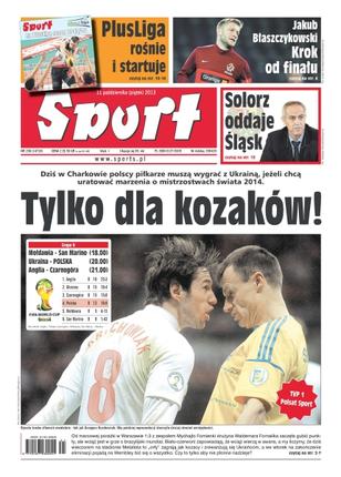 Tylko dla kozaków – dziś w Charkowie polscy piłkarze muszą wygrać z Ukrainą, jeżeli chcą uratować marzenia o mistrzostwach świata 2014; Jakub Błaszczykowski krok od finału; Solorz oddaje Śląsk – nie będzie licytacji ani upadłości, będzie za to licencja na nowy sezon oraz grube miliony złotych dla Zygmunta Solorza – Śląsk ponownie stanie się praktycznie w całości klubem miejskim; umarł król, niech żyje nowy – czy nadchodzi złota era zespołu z Zielonej Góry, Stelmet broni tytułu i jest głównym faworytem nowych rozgrywek; uniwersalny małolat – sport ma w genach, bo jego dziadek i ojciec byli świetnymi hokeistami, 18-letni Patryk Wronka robi furorę na lodowiskach ekstraligi.