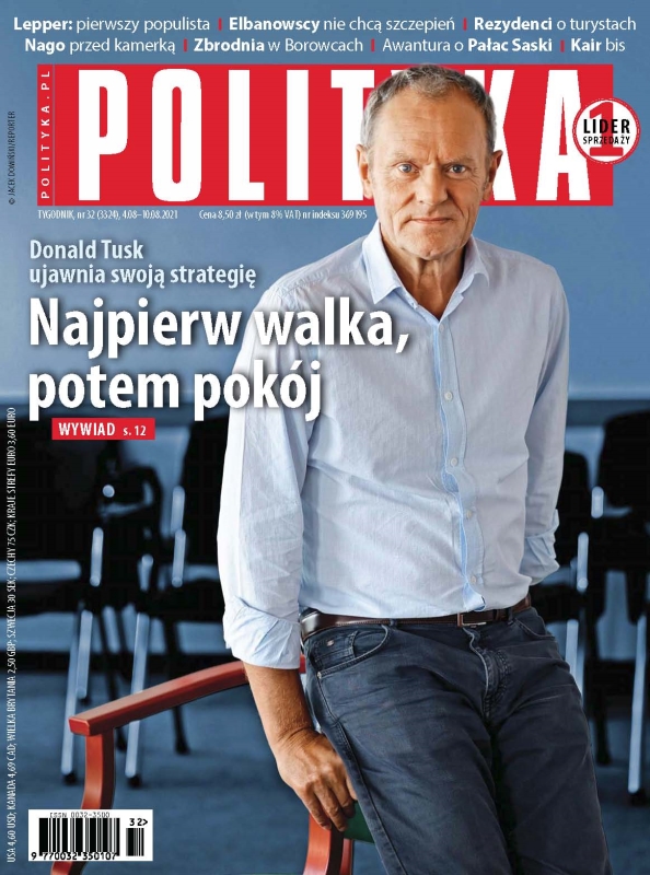 Donald Tusk w rozmowie z Jerzym Baczyńskim o tym, jak pokonać PiS; Andrzej Lepper wskazał drogę populistom; Elbanowscy znów na froncie; Prof. Andrzej Paczkowski i prof. Marcin Zaremba o nowym szefie IPN i polityce historycznej; Rozmowa z Justyną Dżbik-Kluge o tym, jak Polacy zachowują się na zagranicznych wakacjach; Po co władzy Pałac Saski; Czy warto inwestować w sterowce; Białoruski atak irackimi migrantami; Stephen King jakiego nie znacie.