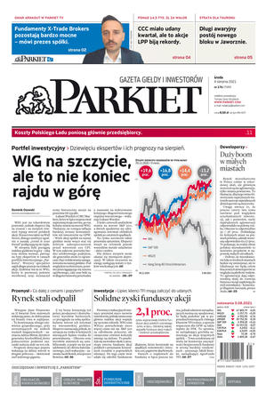 Największy w Polsce newsroom gospodarczy zbiera, analizuje i zgłębia dla Państwa najważniejsze informacje ze świata finansów. Codzienne wydanie „Parkietu”, sześć dni w tygodniu, to kilkadziesiąt artykułów o emitentach, instytucjach finansowych, gospodarce. To również opinie, felietony i wywiady z najważniejszymi ludźmi krajowej i globalnej finansjery.