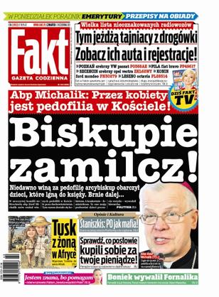 Wielka lista nieoznakowanych radiowozów – tym jeżdżą tajniacy z drogówki, zobacz ich auta i rejestracje; abp Michalik: przez kobiety jest pedofilia w Kościele; Donald Tusk i jego żona Małgorzata zadają szyku na Czarnym Lądzie; sprawdź, co posłowie kupili sobie za twoje pieniądze; Ewa Chodakowska: jestem znana, bo pomagam; Fornalik to już historia, ponoć nowym trenerem ma zostać Adam Nawałka.