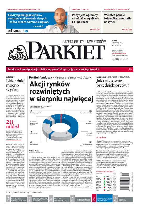 Największy w Polsce newsroom gospodarczy zbiera, analizuje i zgłębia dla Państwa najważniejsze informacje ze świata finansów. Codzienne wydanie „Parkietu”, sześć dni w tygodniu, to kilkadziesiąt artykułów o emitentach, instytucjach finansowych, gospodarce. To również opinie, felietony i wywiady z najważniejszymi ludźmi krajowej i globalnej finansjery.