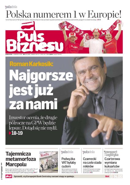 Inwestor Roman Karkosik ocenia, że drugie półrocze 2009 roku na GPW będzie obfitowało we wzrosty kursów; rząd nie podniesie podstawowej stawki VAT z 22 do 23 procent; według unijnych statystyk polska gospodarka rozwija się najszybciej w całej Europie; Zbigniew Kotlarek, szef MSF Polska, zamierza zbudować firmę, której roczne obroty sięgną nawet 1 mld zł; szef Netii, Mirosław Godlewski, uważa, że w dobie kryzysu łatwiej zdobywać rynek i pozyskiwać nowych klientów.