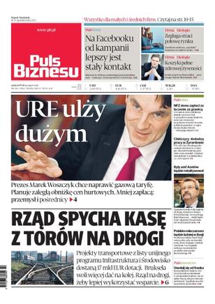 URE ulży dużym – prezes Marek Woszczyk chce naprawić gazową taryfę, planuje zaległą obniżkę cen hurtowych; projekty transportowe z listy unijnego programu Infrastruktura i Środowisko dostaną 17 mld EUR dotacji; na Facebooku od kampanii lepszy jest stały kontakt; dyrektywa siarkowa „zepchnie” kontenery ze statków na tiry.