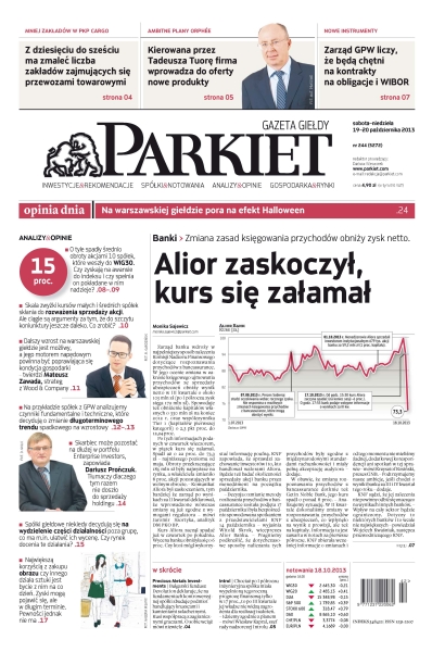 Alior zaskoczył, kurs się załamał – zmiana zasad księgowania przychodów obniży zysk netto; PKP Cargo – z dziesięciu do sześciu ma zmaleć liczba zakładów zajmujących się przewozami towarowymi; zarząd GPW liczy, że będą chętni na kontrakty na obligacje i WIBOR; na warszawskiej giełdzie pora na efekt Halloween.