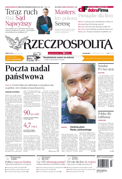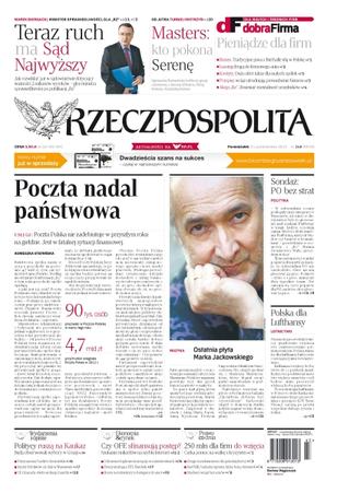 Poczta Polska nie zadebiutuje w przyszłym roku na giełdzie – jest w fatalnej sytuacji finansowej; PSL chce, by w każdej gminie powyżej 5 tys. mieszkańców o części wydatków decydowali sami obywatele; swój udział w Szczycie Noblistów zapowiedział m.in. Dalajlama; UE i Kanada tworzą strefę wspólnego handlu – porozumienie jest nawet bardziej ambitne niż NAFTA; jutro premiera ostatniej płyty Marka Jackowskiego, jest na niej 1 1 nowych piosenek oraz gwiazdorskie duety; Manchester United zremisował z Southampton 1:1 – Artur Boruc zatrzymał mistrza Anglii; wymarzony mecz Adama Nawałki, pierwsza porażka Wisły Kraków i kłopoty Lechii Gdańsk.Dodatki: Ekonomia & Rynek, Prawo co dnia, Prawo i praktyka, Dobra firma, Nieruchomości, Ekspert księgowego, Supermarket nowych mieszkań, Zainwestuj w sukces, Polska samorządowa, Komunikaty i ogłoszenia.