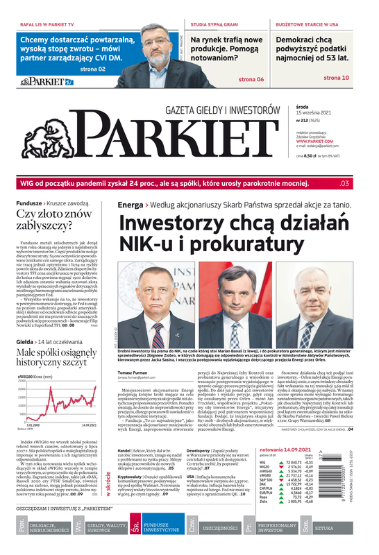 Największy w Polsce newsroom gospodarczy zbiera, analizuje i zgłębia dla Państwa najważniejsze informacje ze świata finansów. Codzienne wydanie „Parkietu”, sześć dni w tygodniu, to kilkadziesiąt artykułów o emitentach, instytucjach finansowych, gospodarce. To również opinie, felietony i wywiady z najważniejszymi ludźmi krajowej i globalnej finansjery.