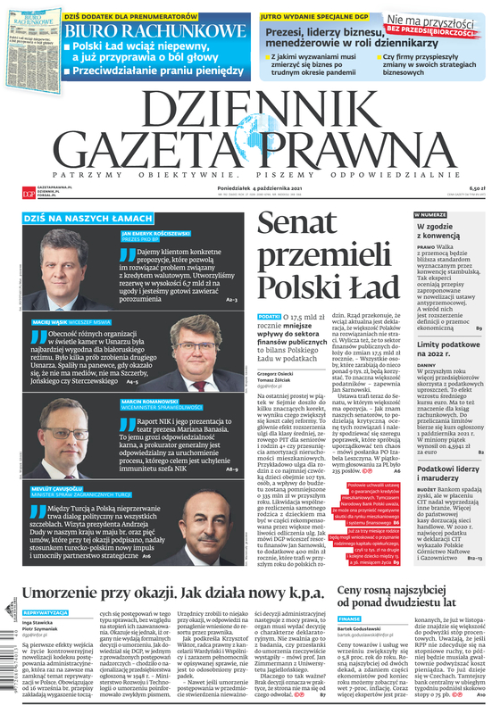 Gazetę wzbogacają praktyczne dodatki dla specjalistów, niedostępne w kioskach: Księgowość i Podatki, Rachunkowość i Audyt, Firma i Prawo, Samorząd i Administracja, Prawnik, Kadry i Płace, Ubezpieczenia i Świadczenia. NOWOŚĆ 2021 r. dodatki Biuro Rachunkowe i Księgowość Budżetowa (dostępne raz w miesiącu). Dodatkowo publikujemy wyjątkowo cenione przez Czytelników specjalne dodatki dotyczące najważniejszych zmian, nowych rozwiązań, na gorąco odpowiadamy na pytania. Piszemy o pracy zdalnej, o tarczach antykryzysowych, o nowych przepisach do walki z epidemią, o sposobach walki z zatorami płatniczymi i nowych obowiązkach pracodawców. Zapewniamy bezpieczeństwo w stosowaniu zmieniającego się prawa.