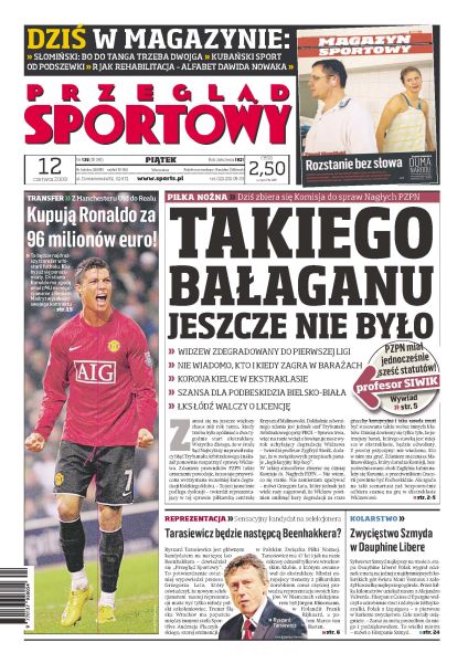 Jeden z najważniejszych działaczy PZPN twierdzi, że następcą Leo Beenhakkera zostanie Ryszard Tarasiewicz; Jakub Wawrzyniak po półrocznej przygodzie z Panathinaikosem Ateny, wraca do Legii Warszawa; wywiad z Henrykiem Kasperczakiem, jednym z najwybitniejszych polskich trenerów; Manchester United zaakceptował ofertę kupna Cristiano Ronaldo – Real Madryt zapłaci aż 96 milionów euro; rozmowa z Primożem Kozmusem, mistrzem olimpijskim.