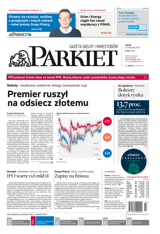 Największy w Polsce newsroom gospodarczy zbiera, analizuje i zgłębia dla Państwa najważniejsze informacje ze świata finansów. Codzienne wydanie „Parkietu”, sześć dni w tygodniu, to kilkadziesiąt artykułów o emitentach, instytucjach finansowych, gospodarce. To również opinie, felietony i wywiady z najważniejszymi ludźmi krajowej i globalnej finansjery.