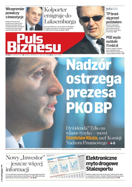 Waldemar Pawlak chce przeforsować zmiany, które ułatwią otrzymanie grantu; Krzysztof Klicki chce zaoszczędzić na podatkach, porządkuje więc biznes i przenosi go za granicę; Komisja Nadzoru Finansowego martwi się o współczynnik wypłacalności PKO BP; w czasie giełdowej zawieruchy dobrze jest poznać opinie ekspertów, ich prognozy, rekomendacje i rady; Stalexport chce przetestować nowy system poboru opłat na autostradzie Kraków—Katowice; wkrótce zostanie ogłoszony przetarg na budowę dwóch bloków energetycznych w Elektrowni Opole.