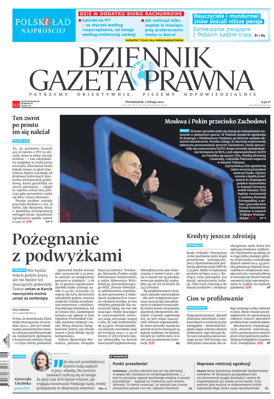 Gazetę wzbogacają praktyczne dodatki dla specjalistów, niedostępne w kioskach: Księgowość i Podatki, Rachunkowość i Audyt, Firma i Prawo, Samorząd i Administracja, Prawnik, Kadry i Płace, Ubezpieczenia i Świadczenia. NOWOŚĆ 2021 r. dodatki Biuro Rachunkowe i Księgowość Budżetowa (dostępne raz w miesiącu). Dodatkowo publikujemy wyjątkowo cenione przez Czytelników specjalne dodatki dotyczące najważniejszych zmian, nowych rozwiązań, na gorąco odpowiadamy na pytania. Piszemy o pracy zdalnej, o tarczach antykryzysowych, o nowych przepisach do walki z epidemią, o sposobach walki z zatorami płatniczymi i nowych obowiązkach pracodawców. Zapewniamy bezpieczeństwo w stosowaniu zmieniającego się prawa.