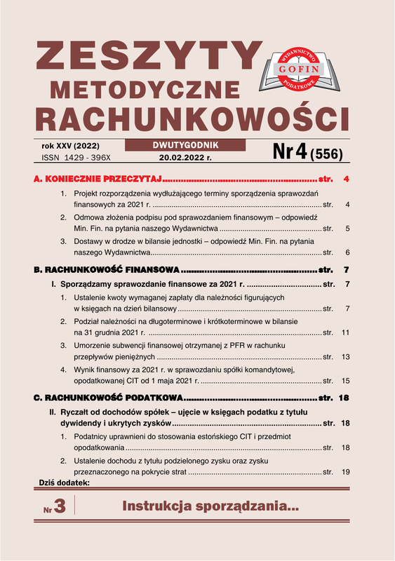 Zeszyty Metodyczne Rachunkowości - dwutygodnik szczegółowo wyjaśnia problemy związane ze stosowaniem ustawy o rachunkowości oraz Krajowych Standardów Rachunkowości. Prezentuje i omawia na przykładach liczbowych ewidencję zdarzeń gospodarczych, wycenę aktywów i pasywów, sporządzanie sprawozdań finansowych oraz stosowanie MSR. Wskazuje różnice między prawem bilansowym i podatkowym. Każdy numer zawiera 68 stron, w tym odpowiedzi na pytania Czytelników. Prezentowane rozwiązania ewidencyjne uwzględniają formę prawną danej jednostki i rodzaj działalności.